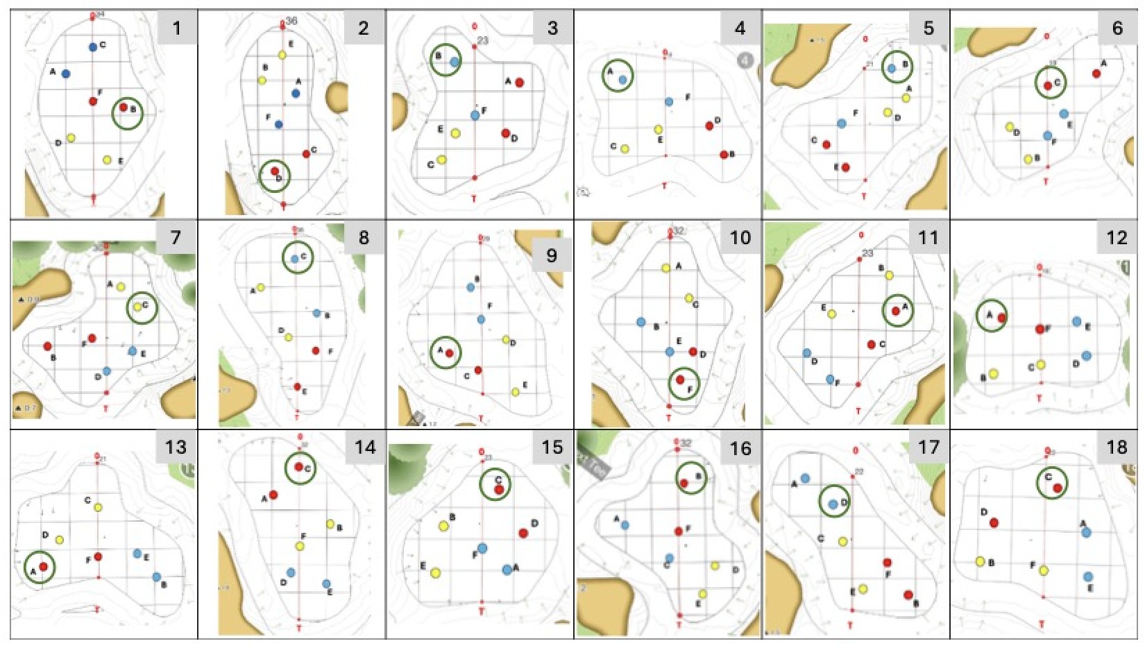 Rappel les zones du parcours sont : La zone générale, les aires de départs, les greens, les bunkers et les zones à pénalité.