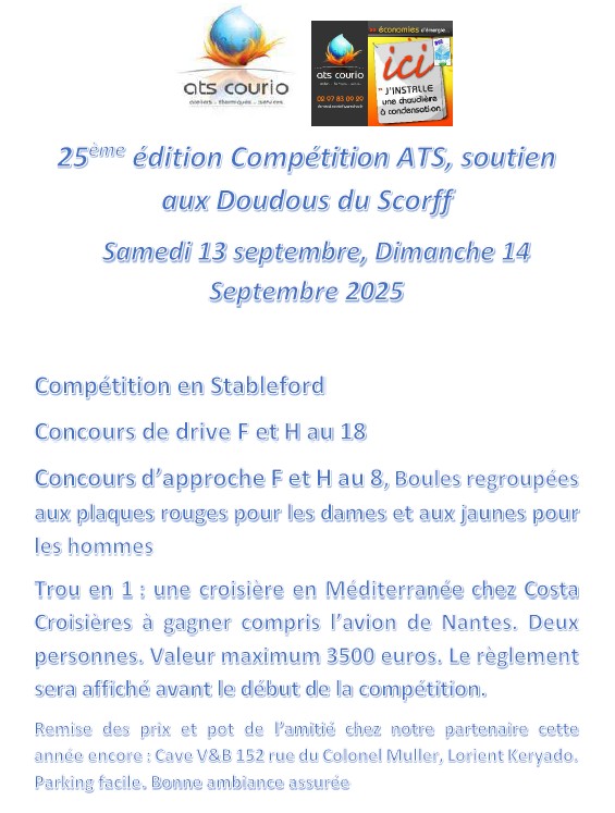 Vous pourrez trouver ci-dessous toutes les informations concernant la compétition ATS Courio qui se déroulera à Val Quéven le samedi 13 et dimanche 14 septembre prochain :
