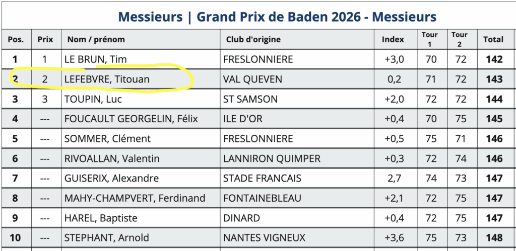 Résultats de Quévennois Grand Prix de Baden Belle 2ème place de Titouan LEFEBVRE Trophée Senior de Nantes Vigneux Victoire de Pavel JIRSA Nantes Vigneux Trophée Senior Partager